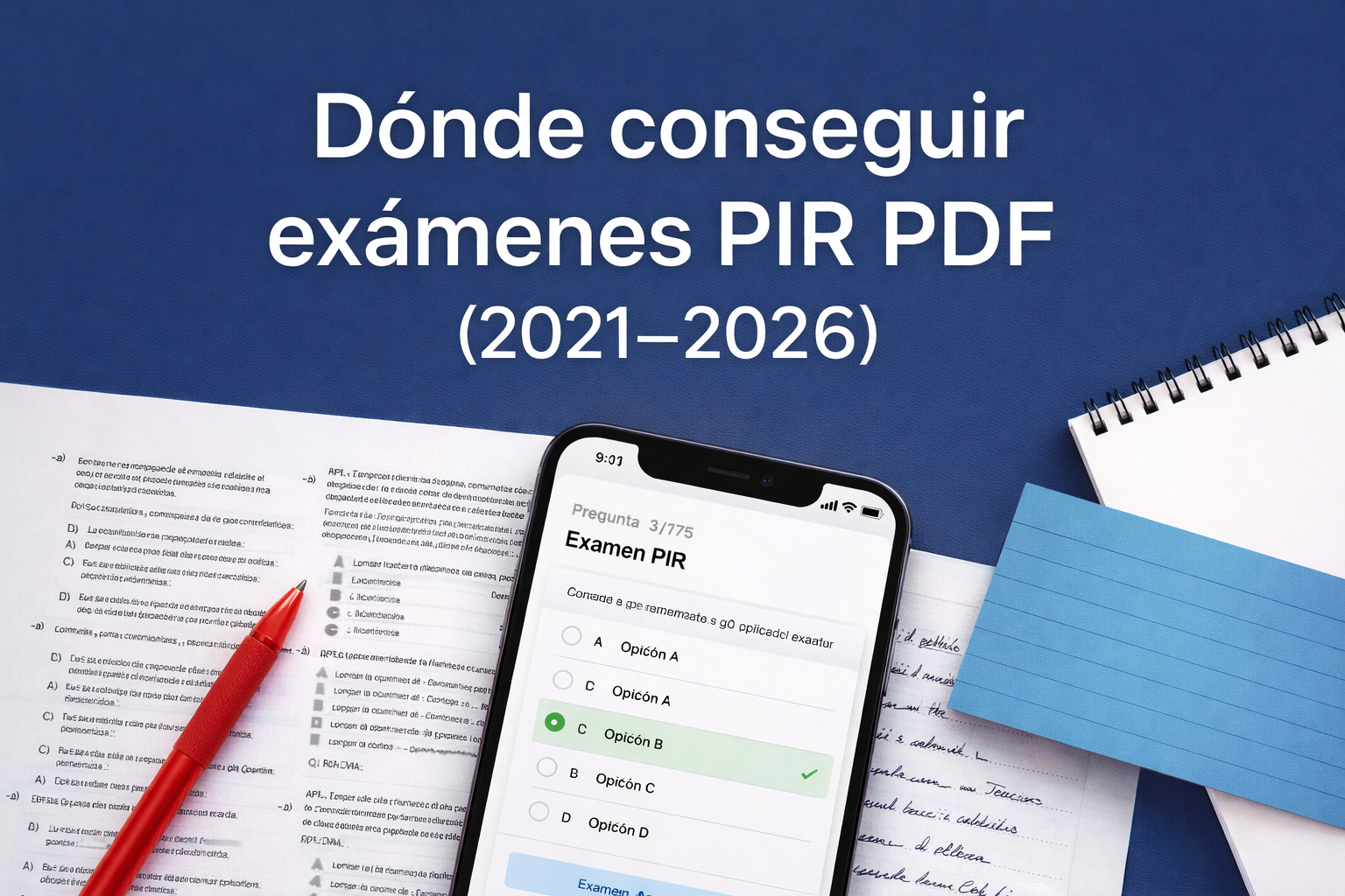 Guía para encontrar exámenes PIR en PDF (2021–2026) y usarlos con método: orden recomendado por años, cómo corregir fallos, y cómo entrenar con simulacros nuevos tipo PIR en Pirguntas.es (cuenta gratis y premium).
